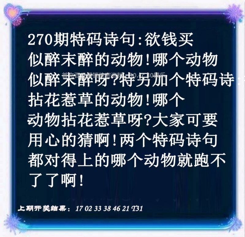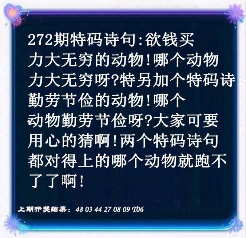 272期:正版彩霸王:今期生肖人人知,水蒲風絮夕陽天。 看生肖:今期送水肖开的生肖 七肖:虎羊马兔龙鼠狗 |